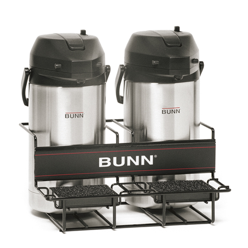 Display and store your coffee selection in your self-service areas with the Bunn 35728.0001 UNIV-2 APR two pot universal airpot rack! This universal airpot rack is capable of holding two airpots so that it can fit on any countertop and attract customers to your coffee selection.