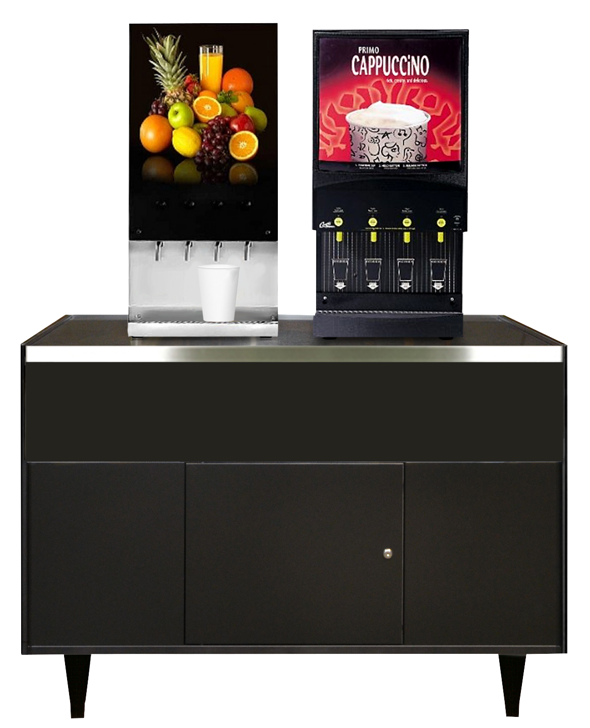 The OCS 490 is our newest office coffee stand, designed to be used with today's single cup units and their merchandisers. This is the widest unit OCS stand in our collection. This new stand also was designed to work well with micro markets. Shown with condiment equipment not included. Stainless Steel top.