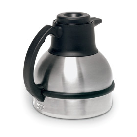 With its easy transport handle, the 1.9 liter deluxe thermal carafe is ideal for restaurants, cafes, hotels, convenience stores, or break rooms. It also features an unbreakable stainless steel exterior and interior, making it a great addition to self service stations or server's areas. The deluxe thermal carafe's attractive chrome finish with black trim complements any location. It is NSF Listed.