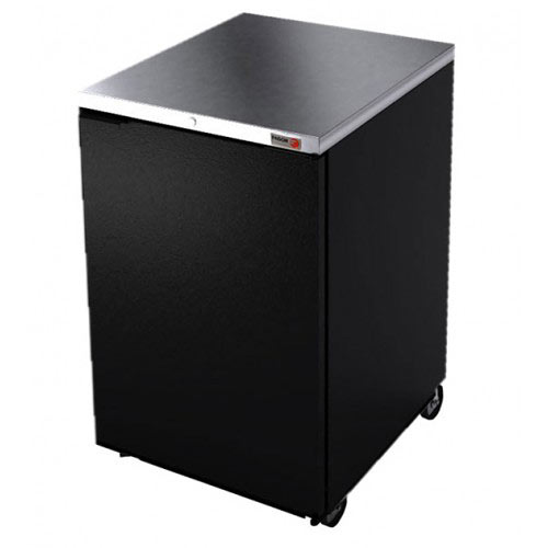 Backbar Cooler, (1) solid door, (415) 12 oz cans or (1) keg capacity, (2) epoxy coated shelves, 18 ga. s/s top, black exterior finish, galvanized interior, s/s floor, door w/lock, fluorescent interior light, self-contained refrigeration, 1/6 hp, cETL, UL, NSF-7