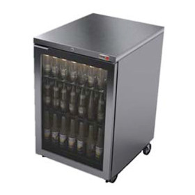 Backbar Cooler, (1) glass doors with aluminum frame, (415) 12 oz cans or (1) keg capacity, (2) epoxy coated shelves, 18 ga. s/s top, s/s exterior finish, galvanized interior, s/s floor, door w/lock, fluorescent interior light, self-contained refrigeration, 1/6 hp, cETL, UL, NSF-7