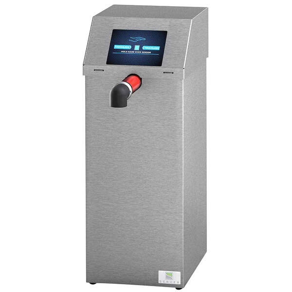 The Server Products 100257 Touchless Express condiment dispenser offers a better way to serve sauces and condiments to maximize customer safety. This countertop model dispenses up to 1 oz. portions from 1.5 gallon pouches with a 16 mm fitment.