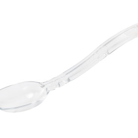 Use this serving spoon with a 1/9-size jar and portioning strike bar to quickly solve overportioning issues. The clear Polycarbonate spoon is 4" (10.2 cm) and holds ⅓ oz (14 mL) by volume. For Use with 2PRS