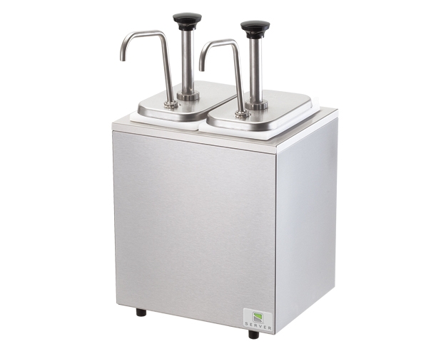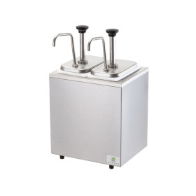 This non-insulated rail combo features a stainless steel pumps that can dispense thin syrups and toppings without dripping. It includes (2) stainless steel pumps 82120 and deep plastic fountain jars 82557 and features a brushed finish base that reduces the visibility of fingerprints.