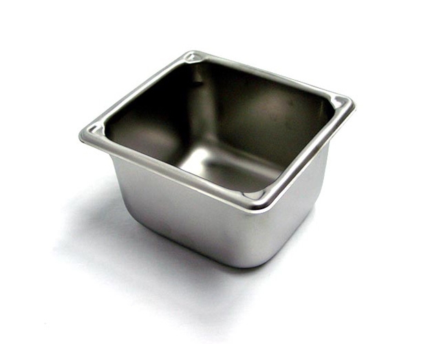 Stainless steel steam table pan 4" (10.2 cm) deep for use in heated or chilled applications.
