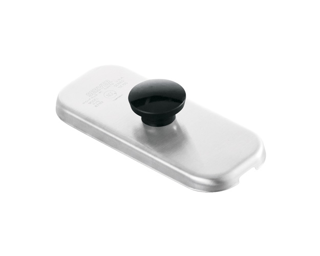 A simple lift-off lid on your new format 2/3-width fountain jar helps protect food from airborne contaminents. The stainless steel lift-off lid fits the narrower format deep or shallow plastic 2/3-width fountain jar.