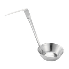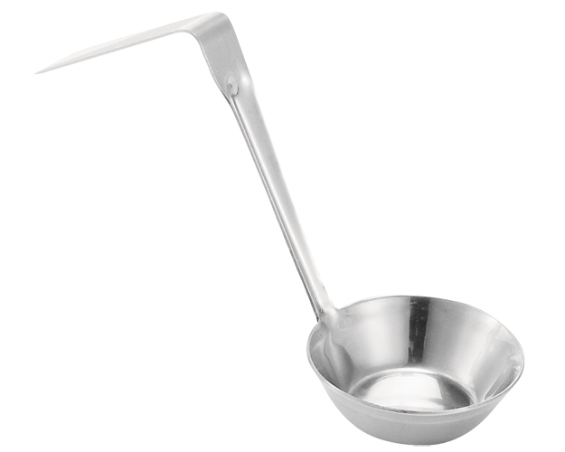This stainless steel ladle can be used with a deep 1/9-size jar. The capacity is 1 oz (30 mL) with a 4" handle.